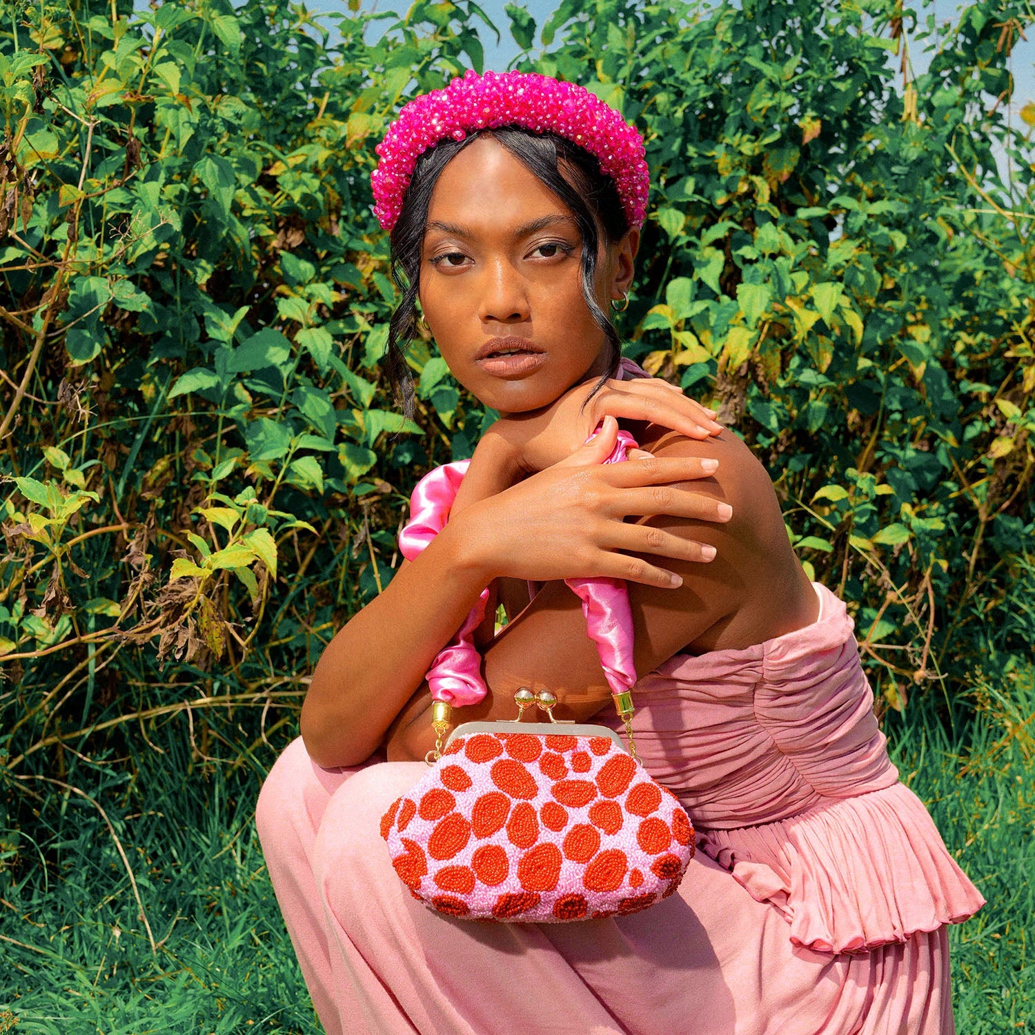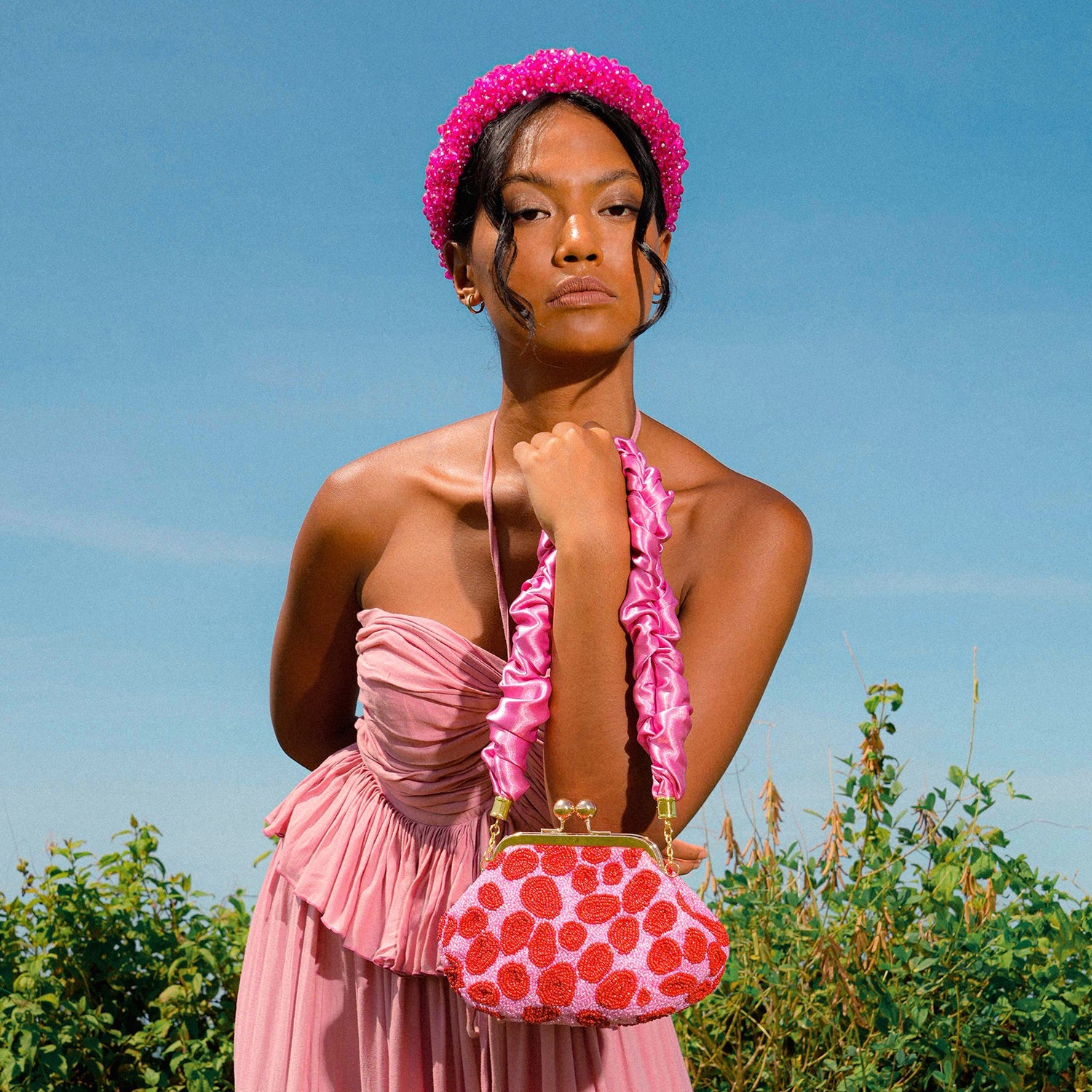 ARNOLDI Daisy Hand-beaded Clutch In Pink & Red