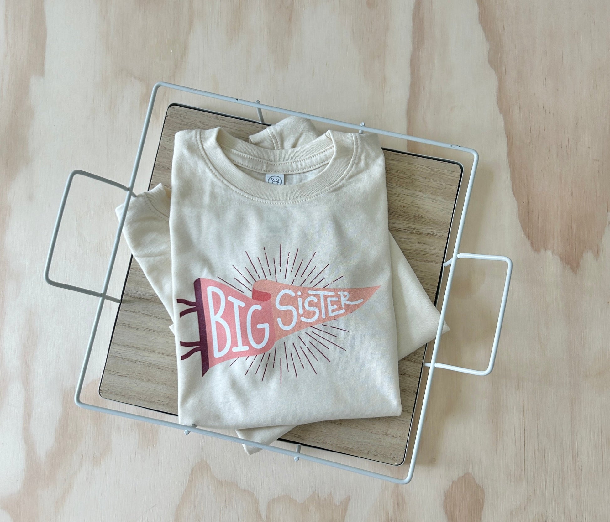 We designed this t-shirt to help celebrate the older sibling gaining a special new role. Historically, pennants were used to show support for a team, and now, we’re using them in that same way!
