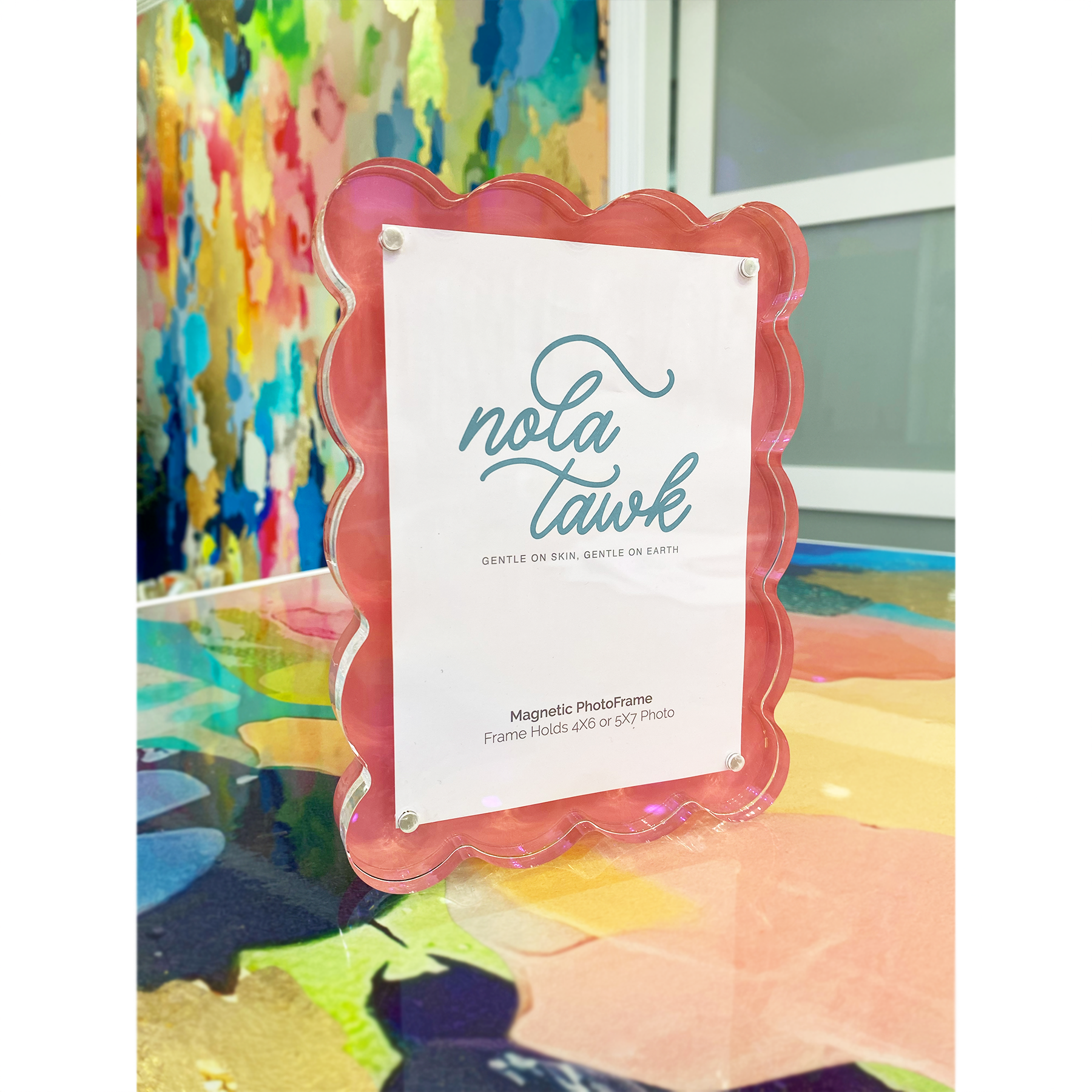 Add a touch of charm to your space with our Blush Scalloped Magnetic Frame. Designed to hold a 5x7 photo, this beautifully crafted frame features a soft pink hue with elegant scalloped edges for a timeless look.