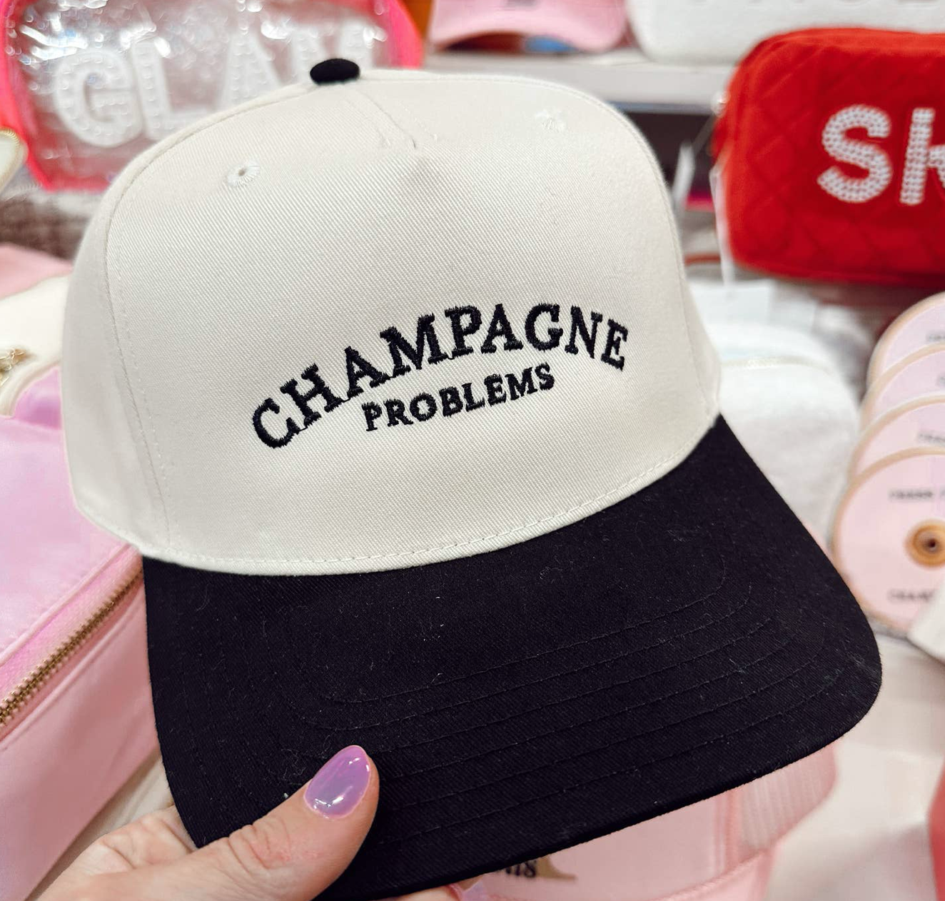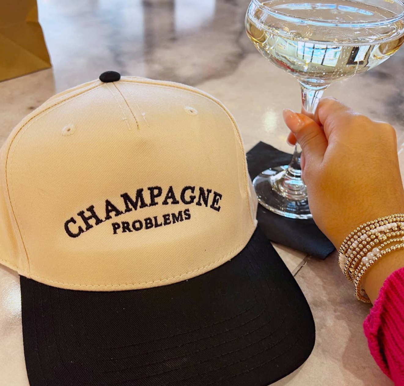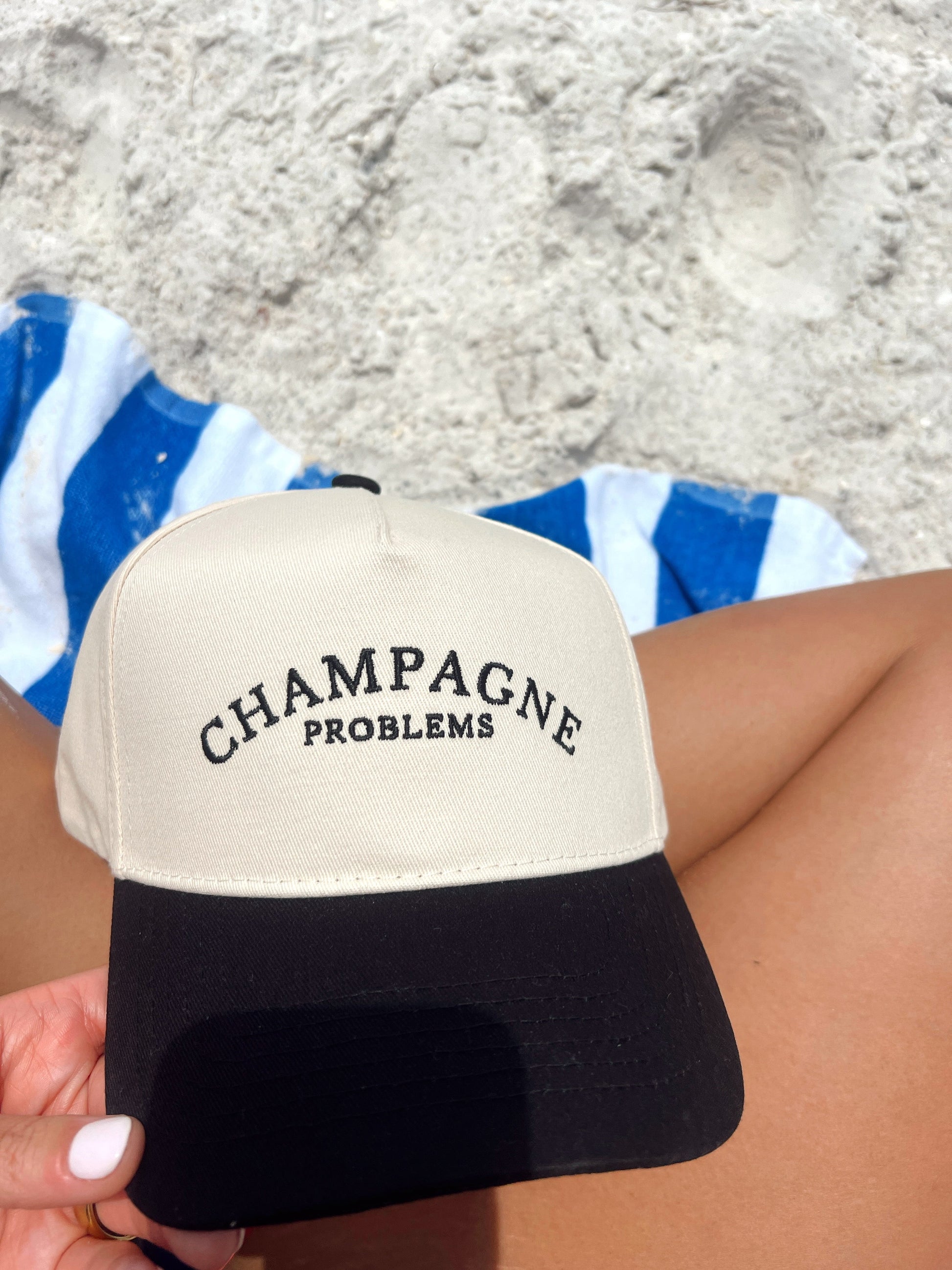 - Black Vintage hat with champagne problems embroidered