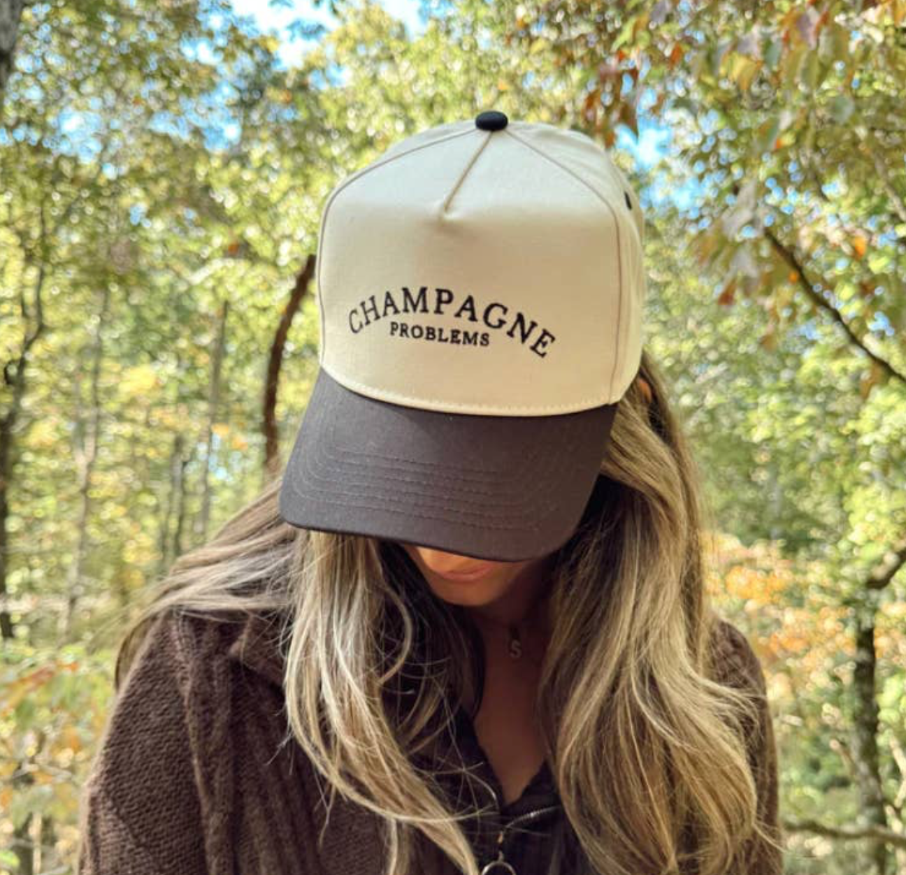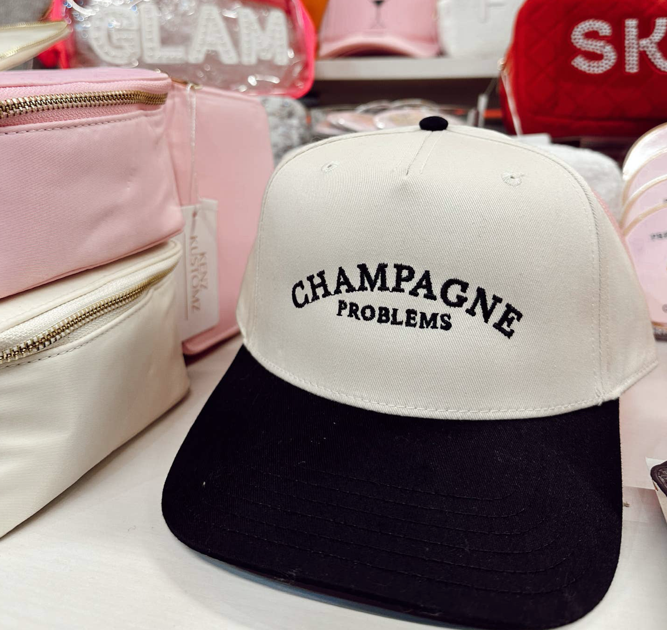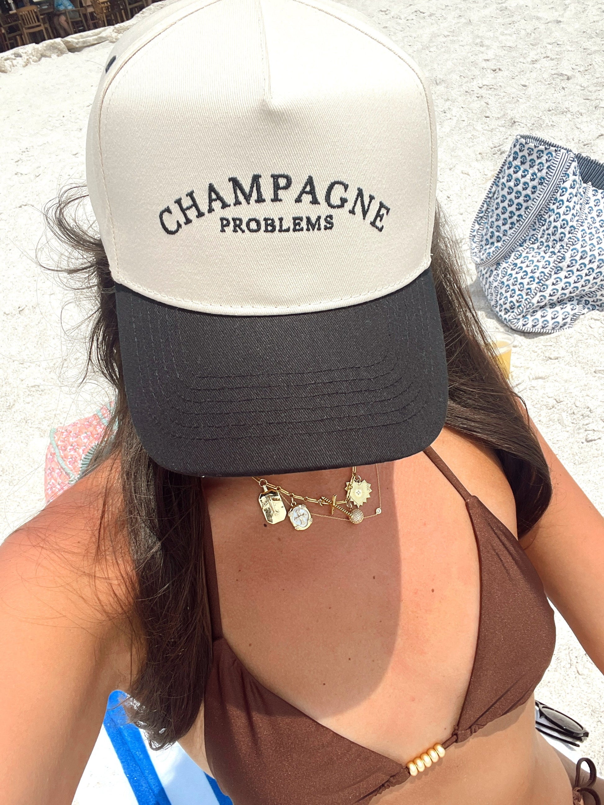 - Black Vintage hat with champagne problems embroidered