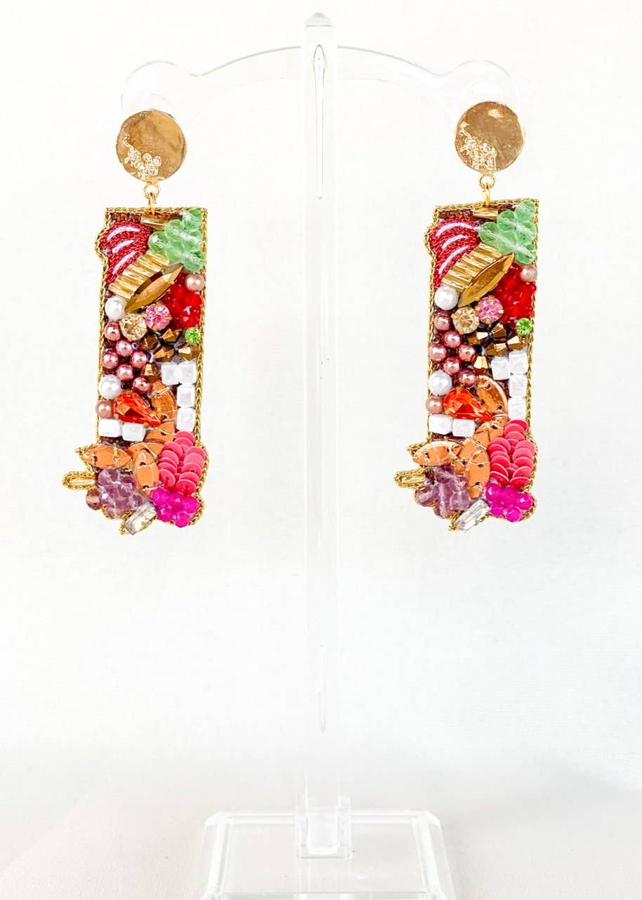 The Charcuterie Board Earrings are made with solid 14k gold plated studs and hypoallergenic.