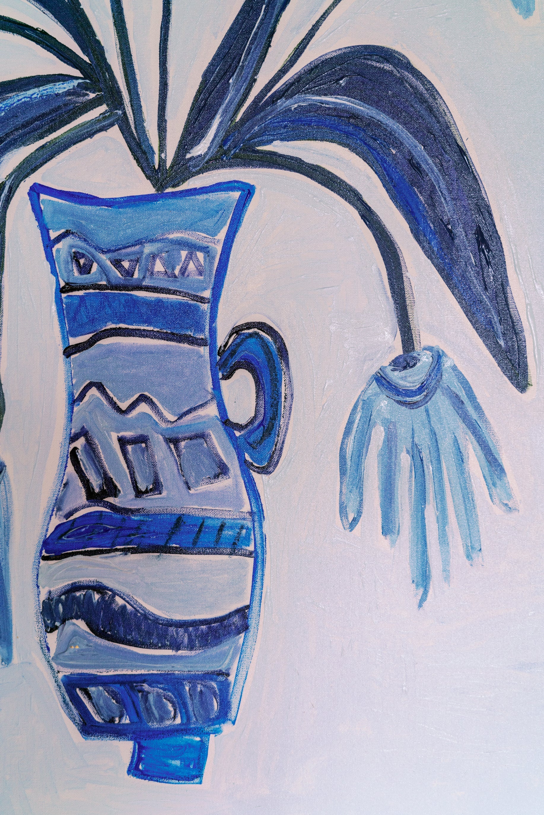 This is an original mixed media monochromatic botanical painting created by Erin Donahue Tice. Measuring 48x36 inches, it showcases a striking arrangement of blue blooms gathered in a coordinating blue vase. With layered brushstrokes and a tonal palette, the piece brings a sense of calm sophistication—like a still life plucked straight from a French countryside windowsill. Professionally framed in a custom gold float frame, the painting is wired and ready to hang vertically. The artist will sign the front unless otherwise specified.