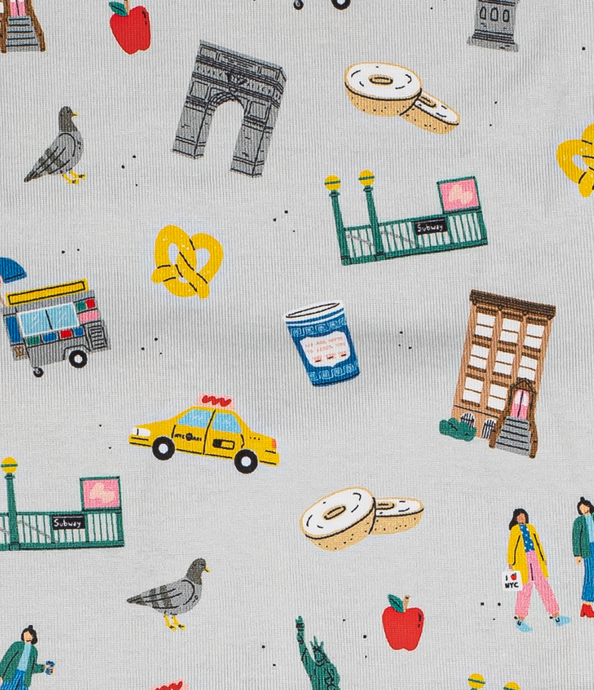 We are in a New York State of mind over here. They’ll definitely sleep tight in this combed rib knit, 100% organic cotton set, complete with comfy ribbed cuffs and an elastic waist.