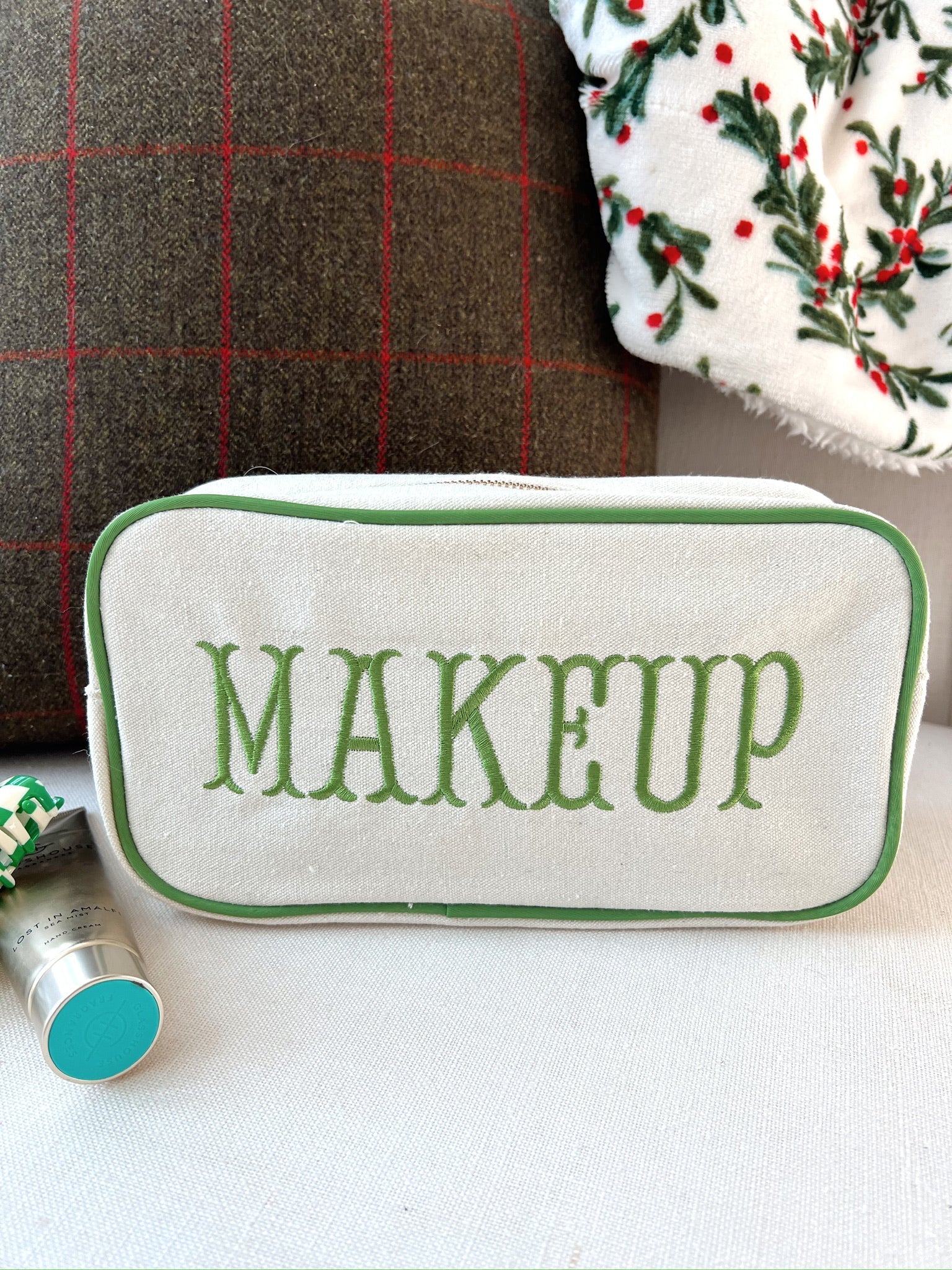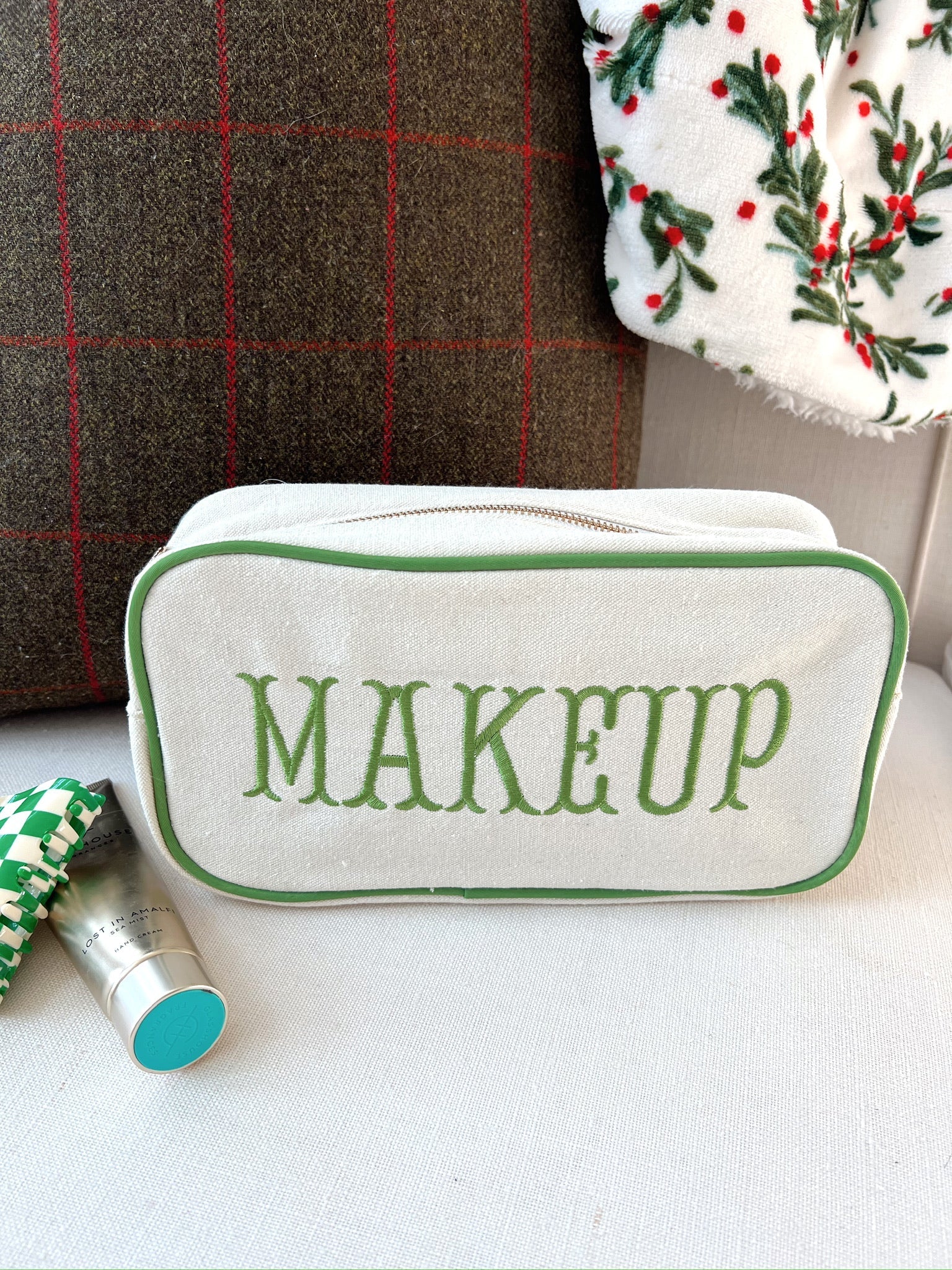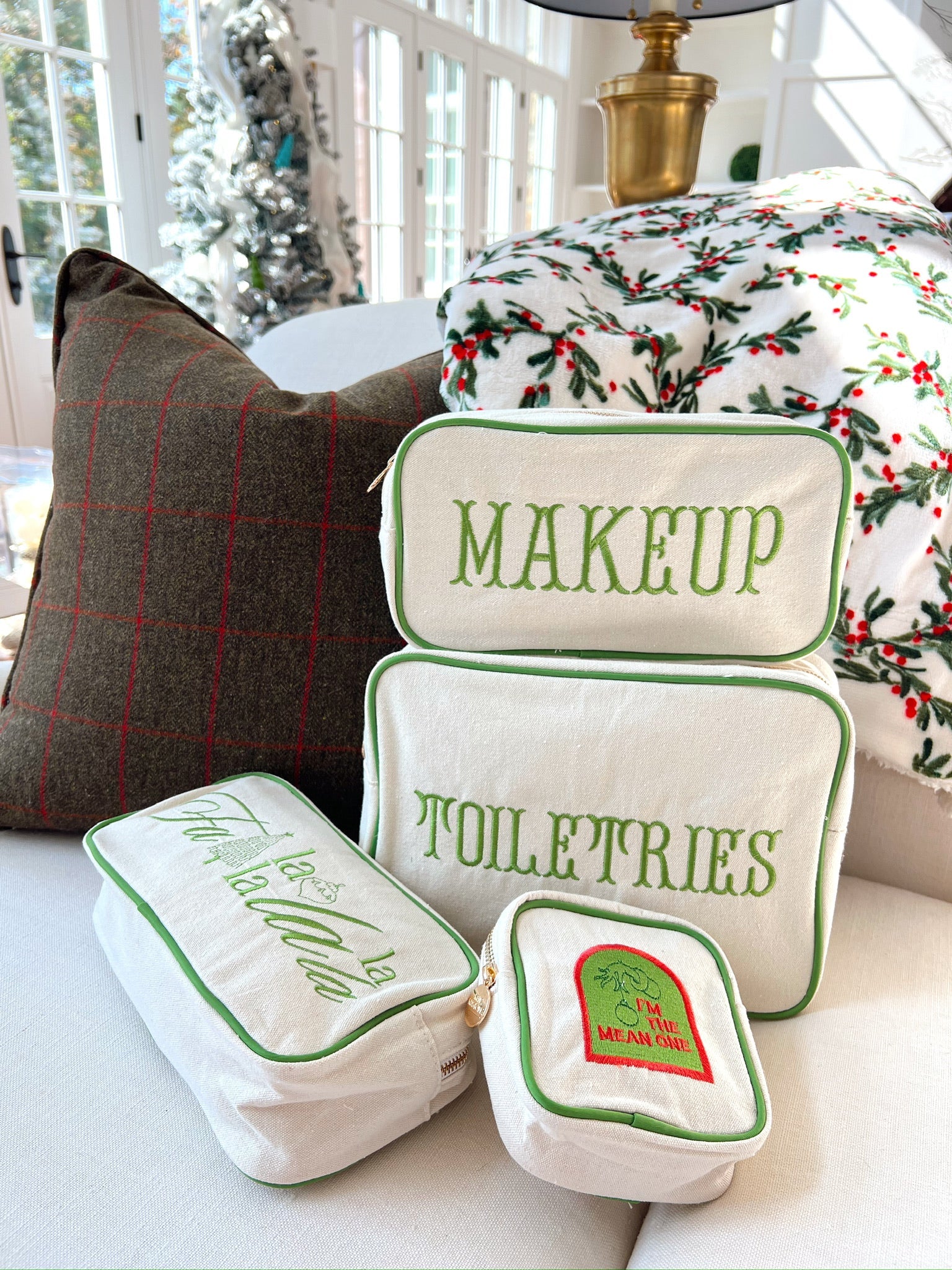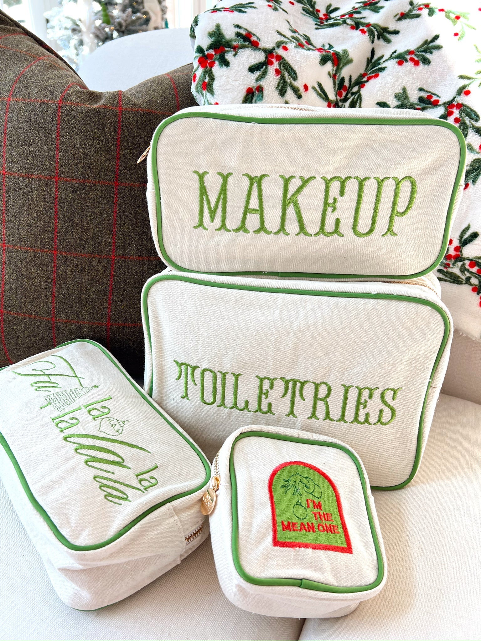 - Our first green canvas makeup bag with this super fun font for embroidery!
