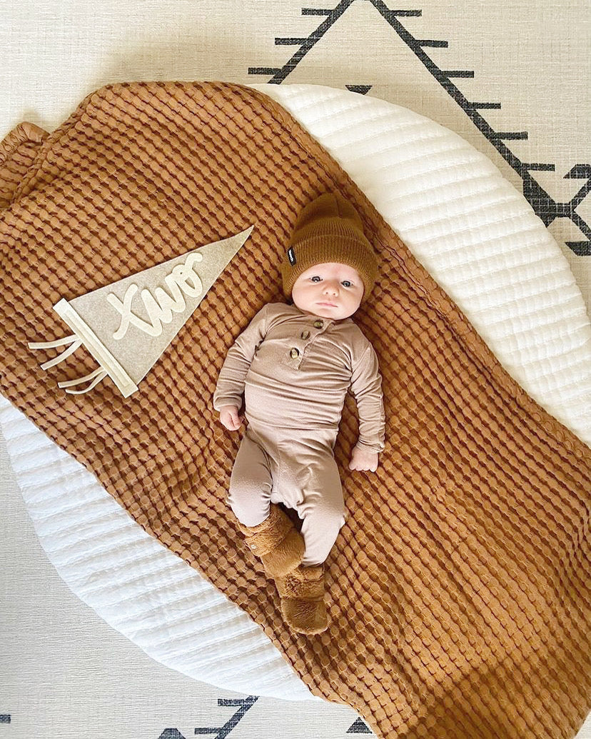 The perfect way to track your little one's monthly growth. Simply place the number on the pennant and press it down firmly. Lay it next to your child and snap a pic!