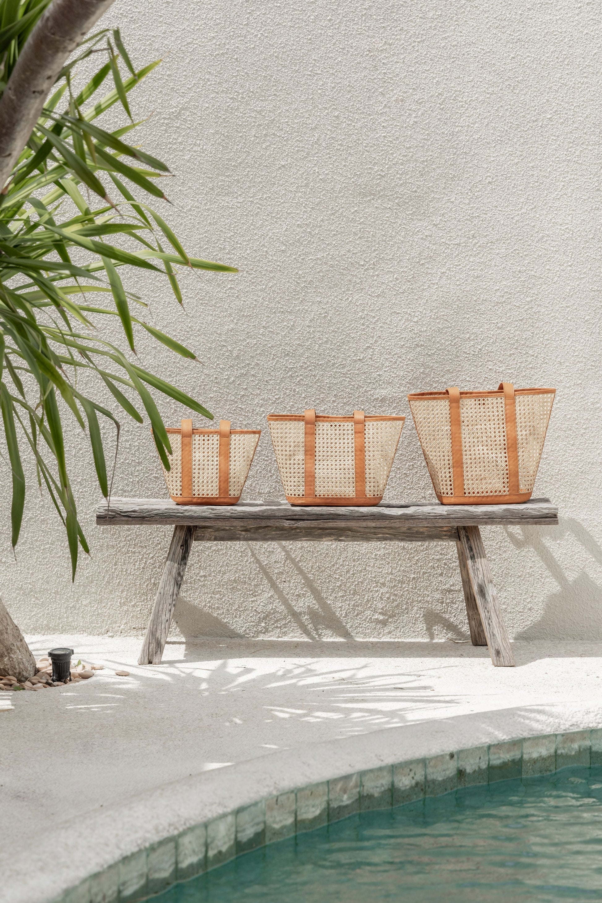 This elevated bag features leather detailing and gorgeous cane webbing. These natural elements combine beautifully to create a sophisticated yet casual feel. Each bag is handmade by our Balinese Artisan Partners and tells a story of craft, culture and innovation. Available in three sizes and two colorways.