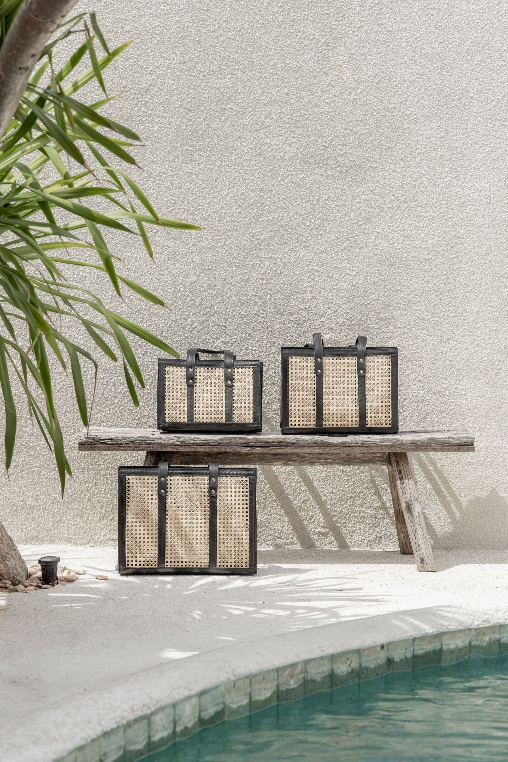 This elevated bag features leather detailing and gorgeous cane webbing. These natural elements combine beautifully to create a sophisticated yet casual feel. Each bag is handmade by our Balinese Artisan Partners and tells a story of craft, culture and innovation. Available in three sizes and two colorways - Camel and Black.