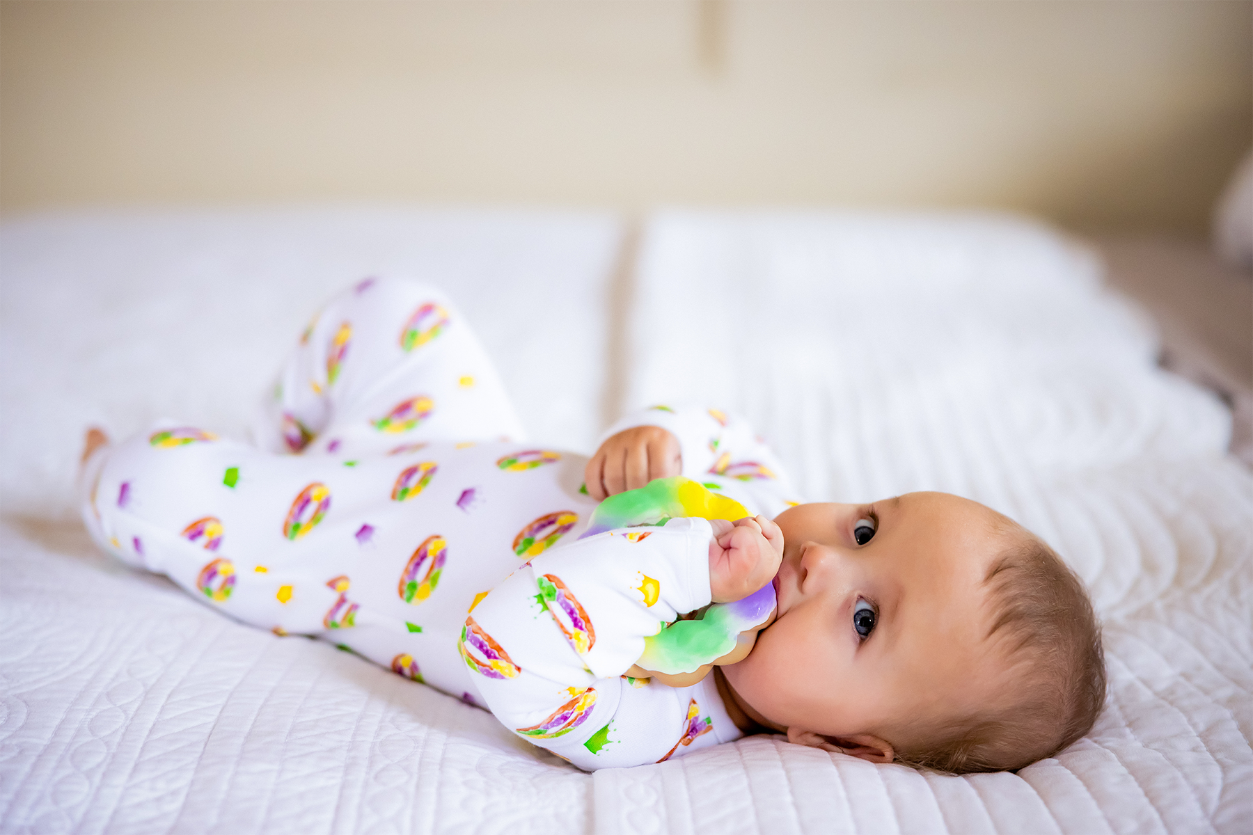 Our 'Slice, Slice, Baby' bath toy & baby teether is the perfect toy to get your little one ready for some real delicious King Cake during Carnival season! It is perfect for teething, bath time, and sensory play.