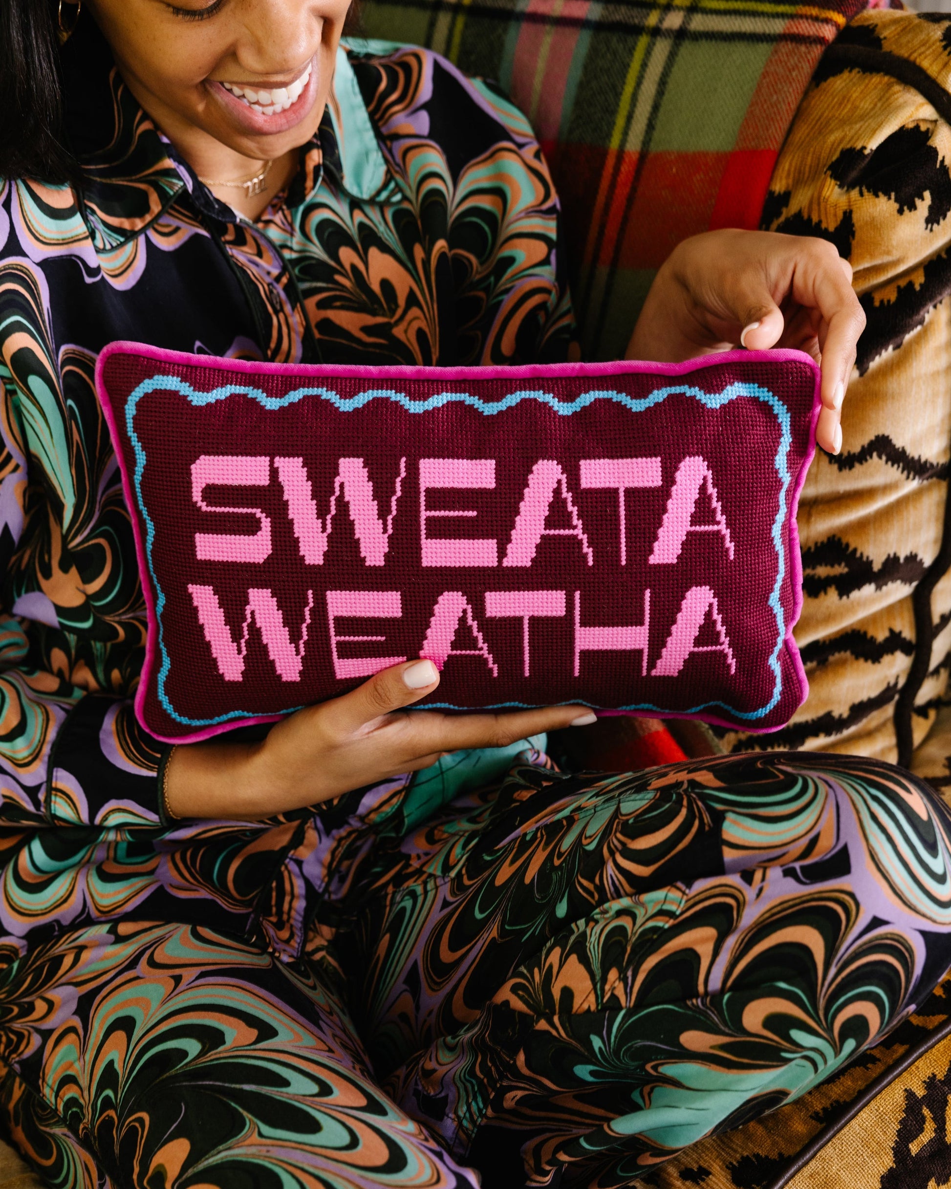 For those who know that the best kind of weather involves cozy sweaters, hot drinks, and the perfect excuse to stay inside. This pillow is for the ones who live for the crisp air, the snug feels, and the autumn vibes that come with that perfect “sweata” moment.